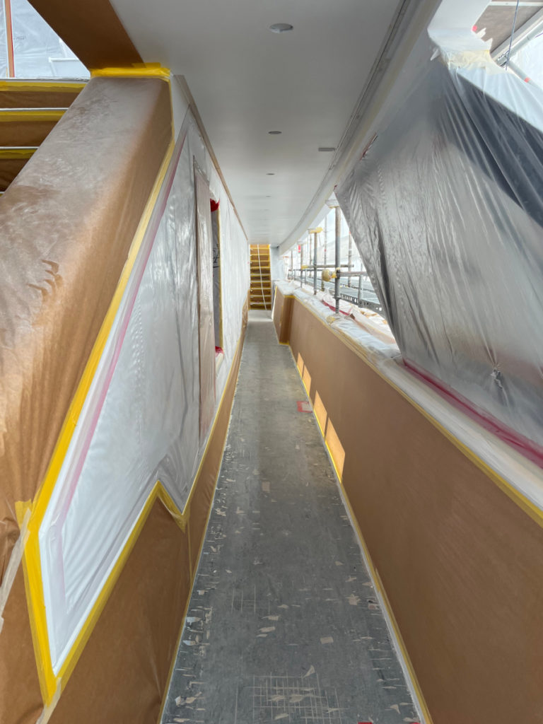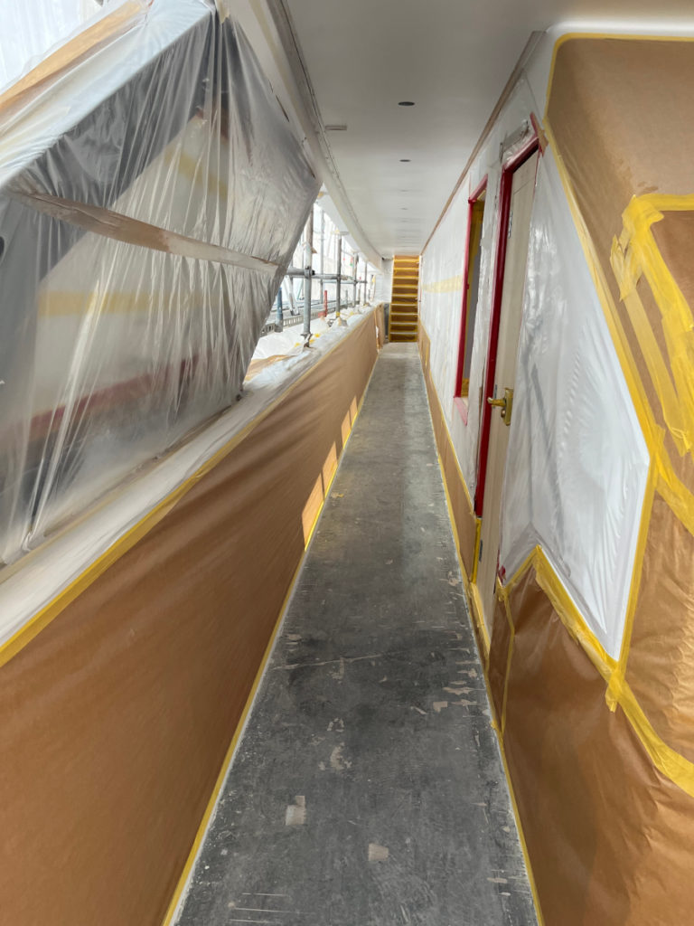 The sixth step: is to have the yacht ready and protected for cleaning and priming.